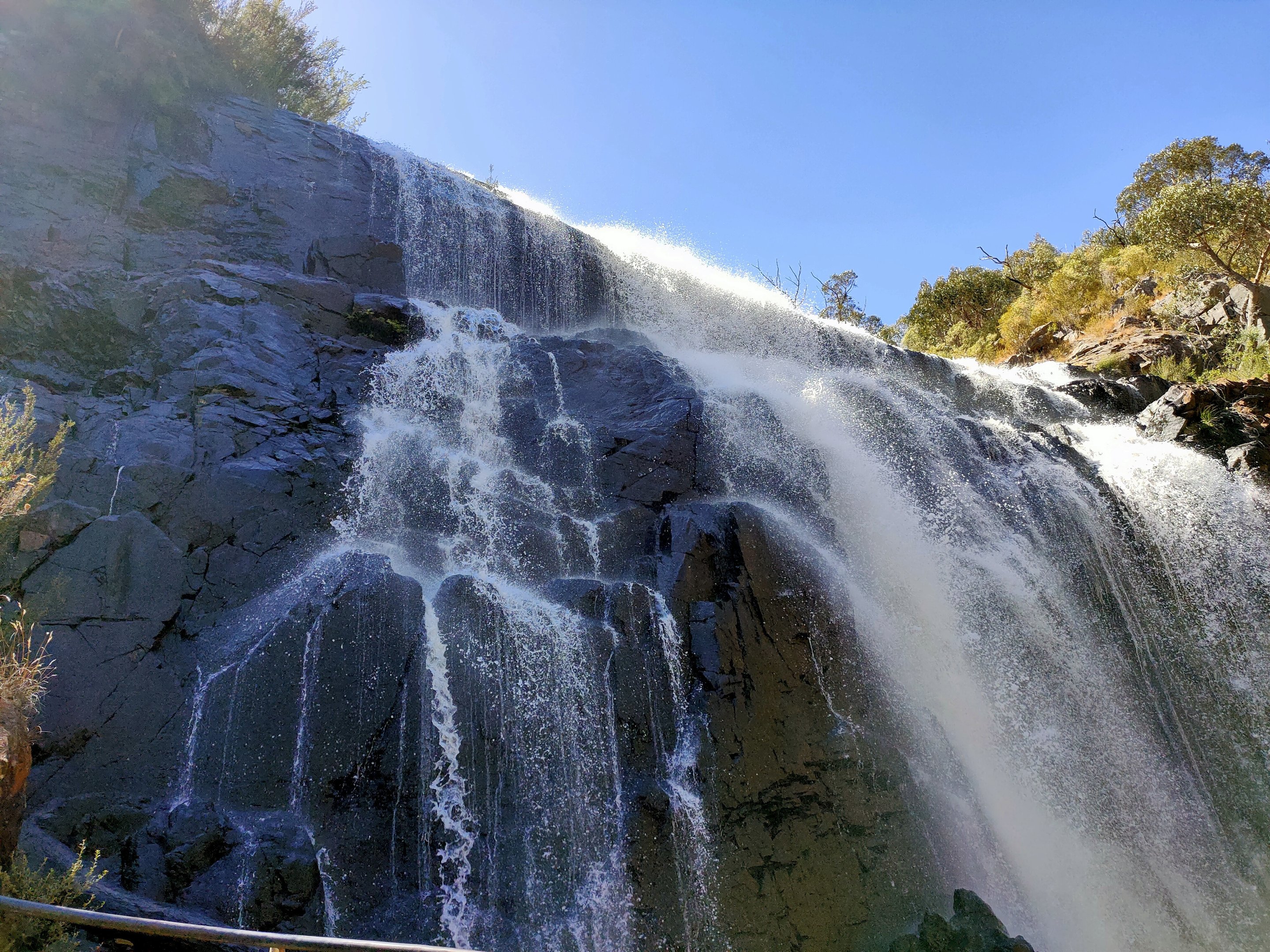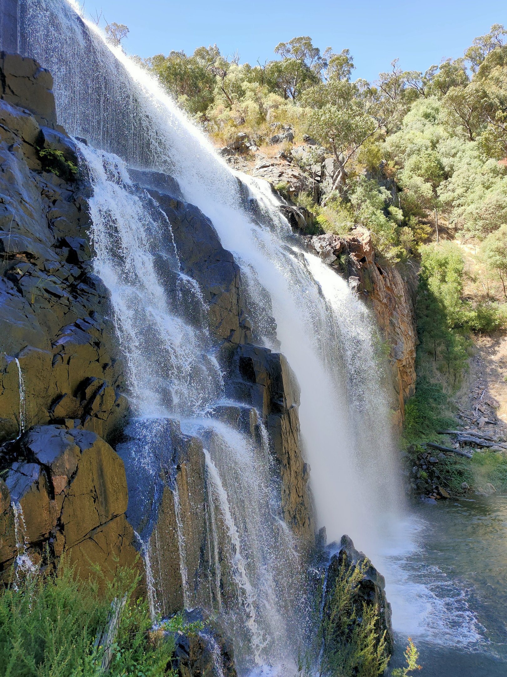 Première halte ou marche, les chutes MacKensie, une des plus grandes chutes d’eau de Victoria. Il y a 3 paliers de cascades et elles sont majestueuses et ont toujours de l’eau. Le dénivelé est très important et la descente a pied est longue et raide. Le retour au point de départ est très éprouvant et le rythme cardiaque monte à la vitesse grand V. Le temps s’est découvert et on a une superbe journée.