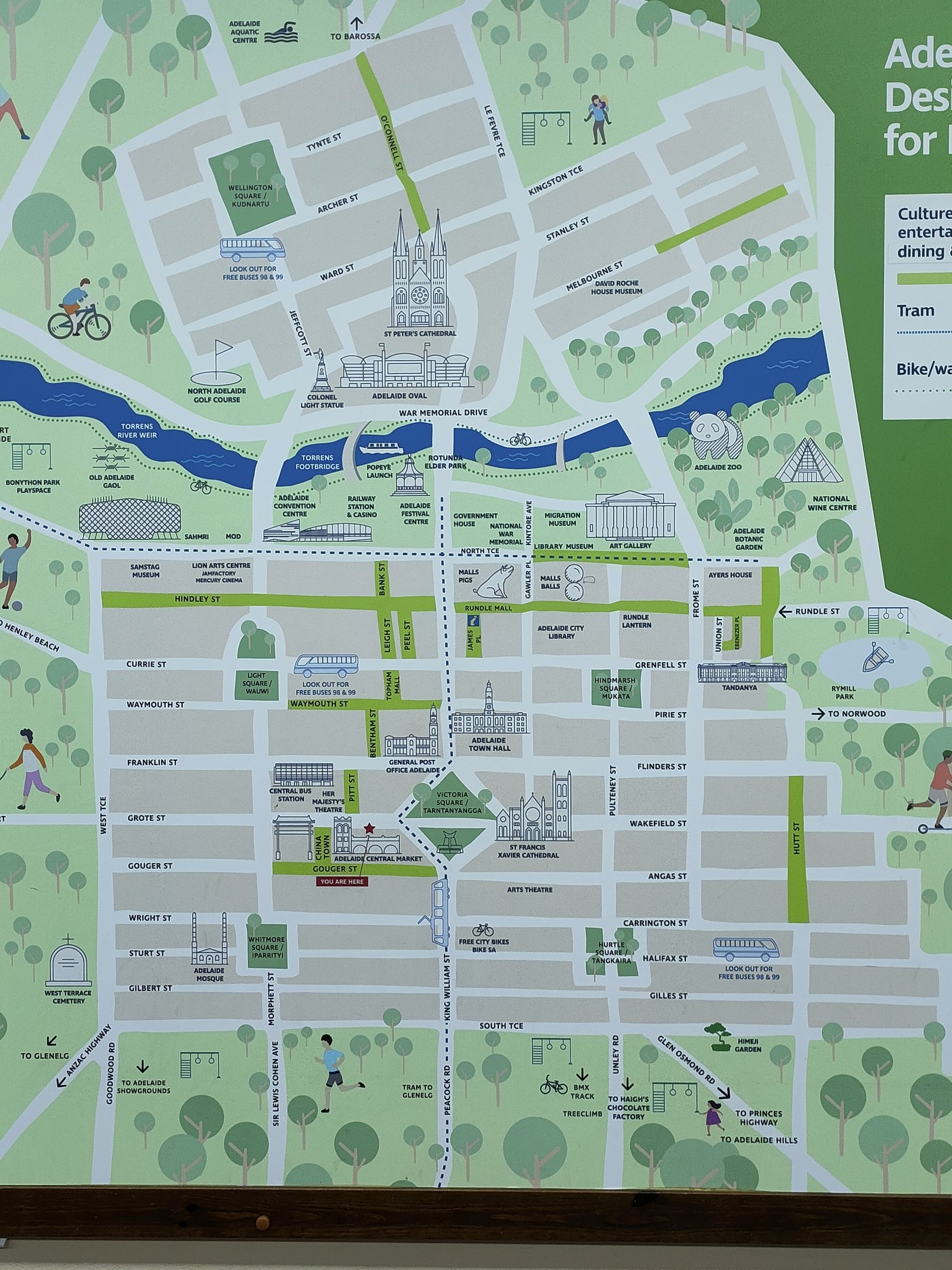 Adelaïde est la ville principale du sud de l’Australie et le centre-ville est complètement entouré de parcs et de verdure.